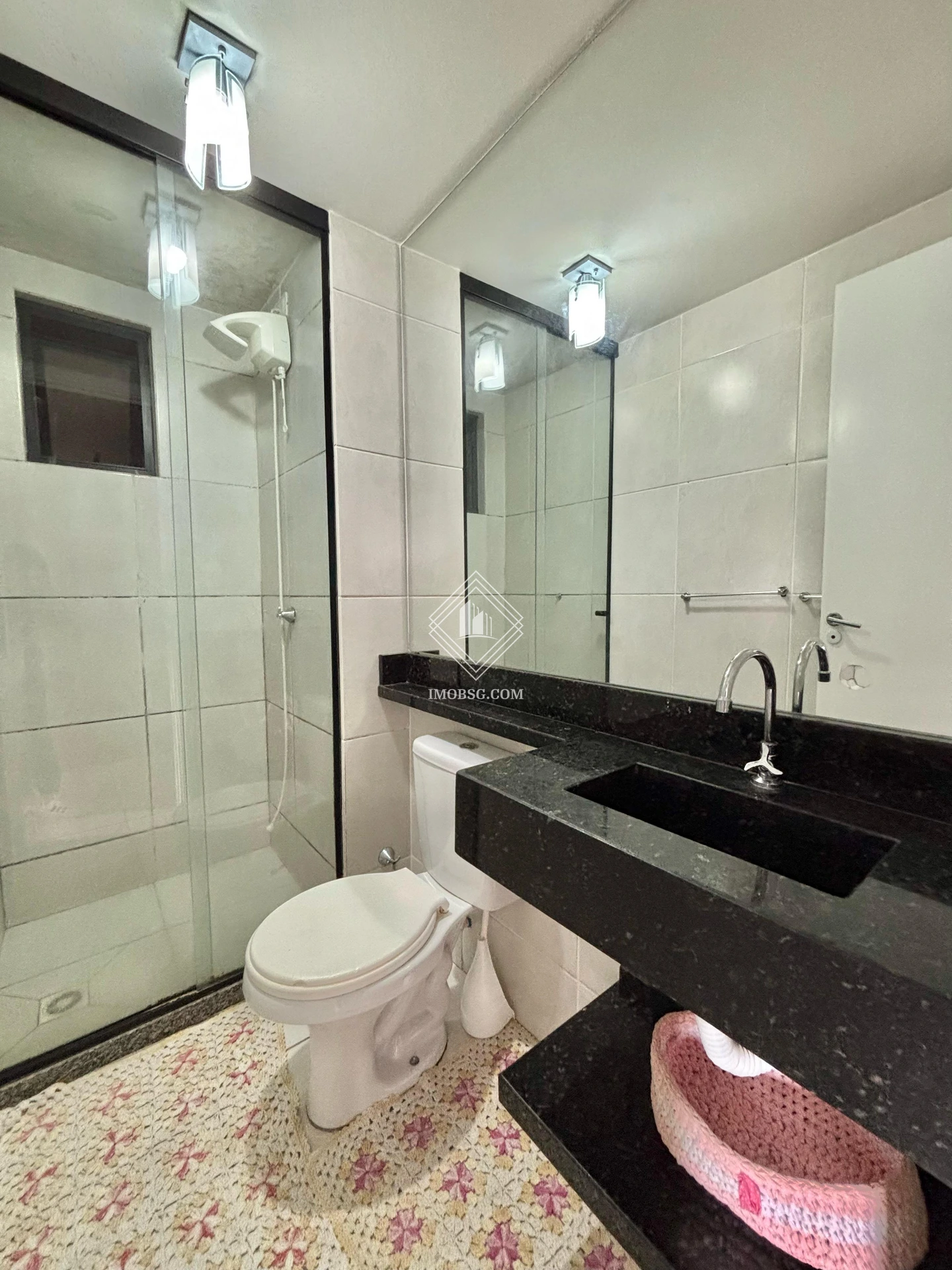- Banheiro com tapete e box blindex;
