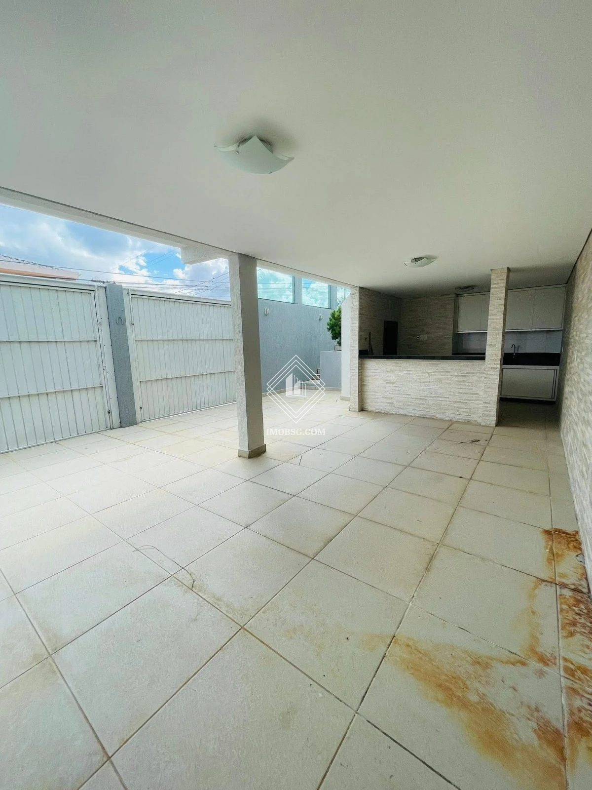 Lavanderia coberta e espaçosa, com área externa