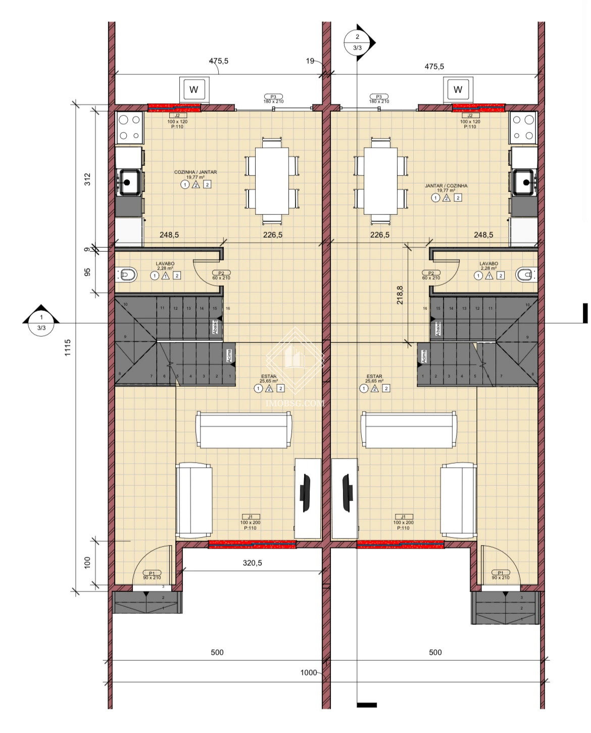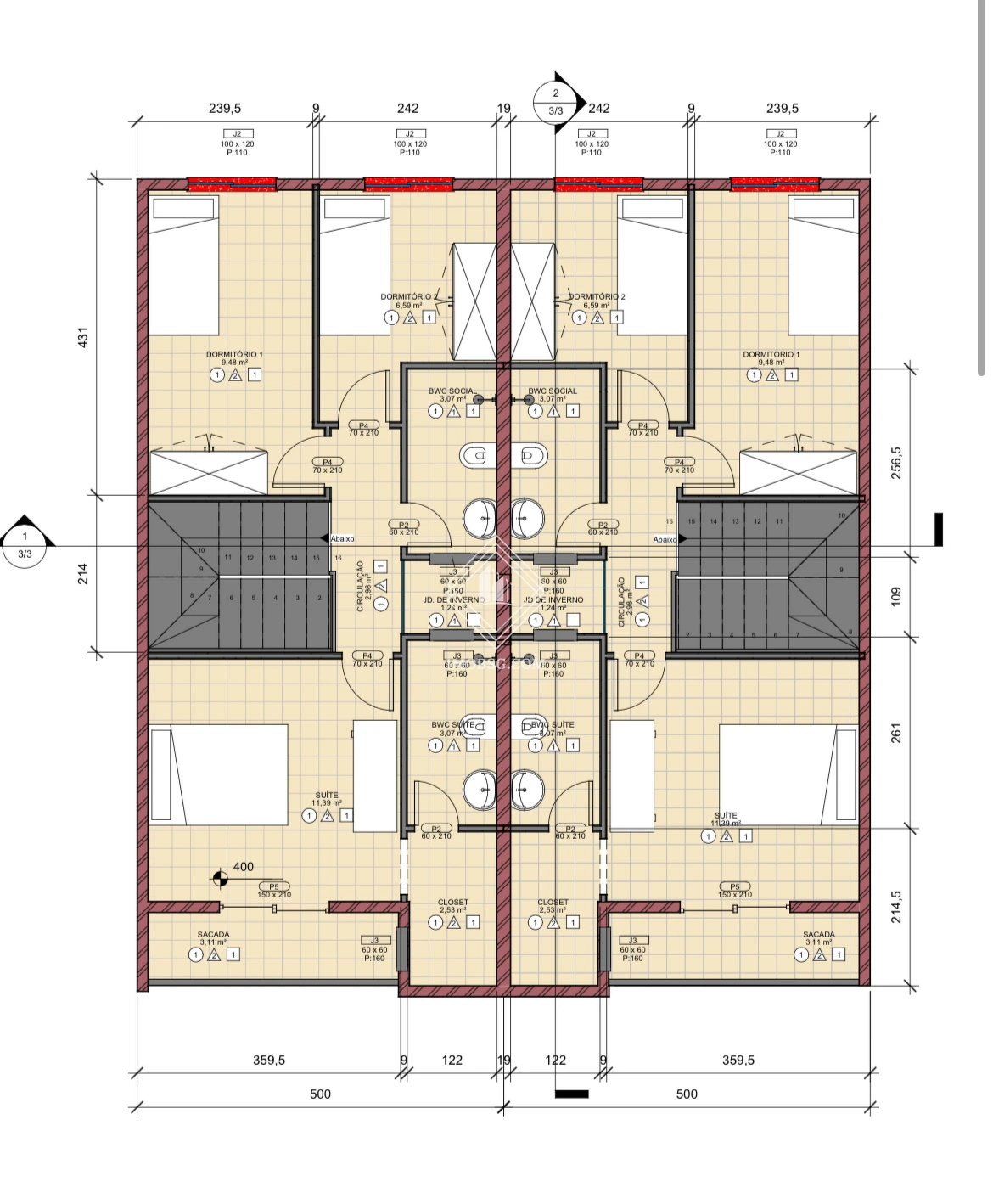Piso superior: São 3 dormitórios sendo uma