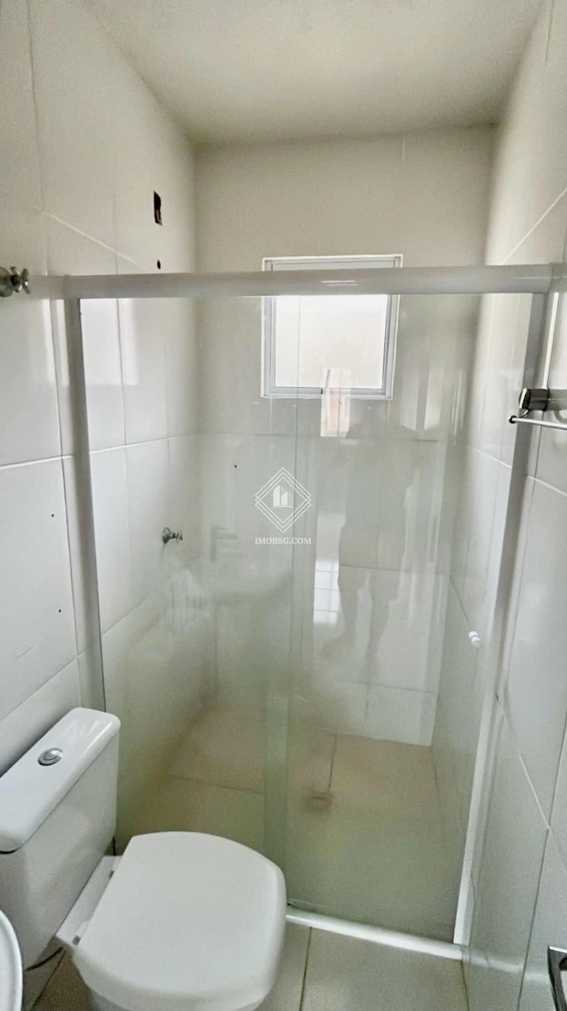 Banheiro social com box de vidro;