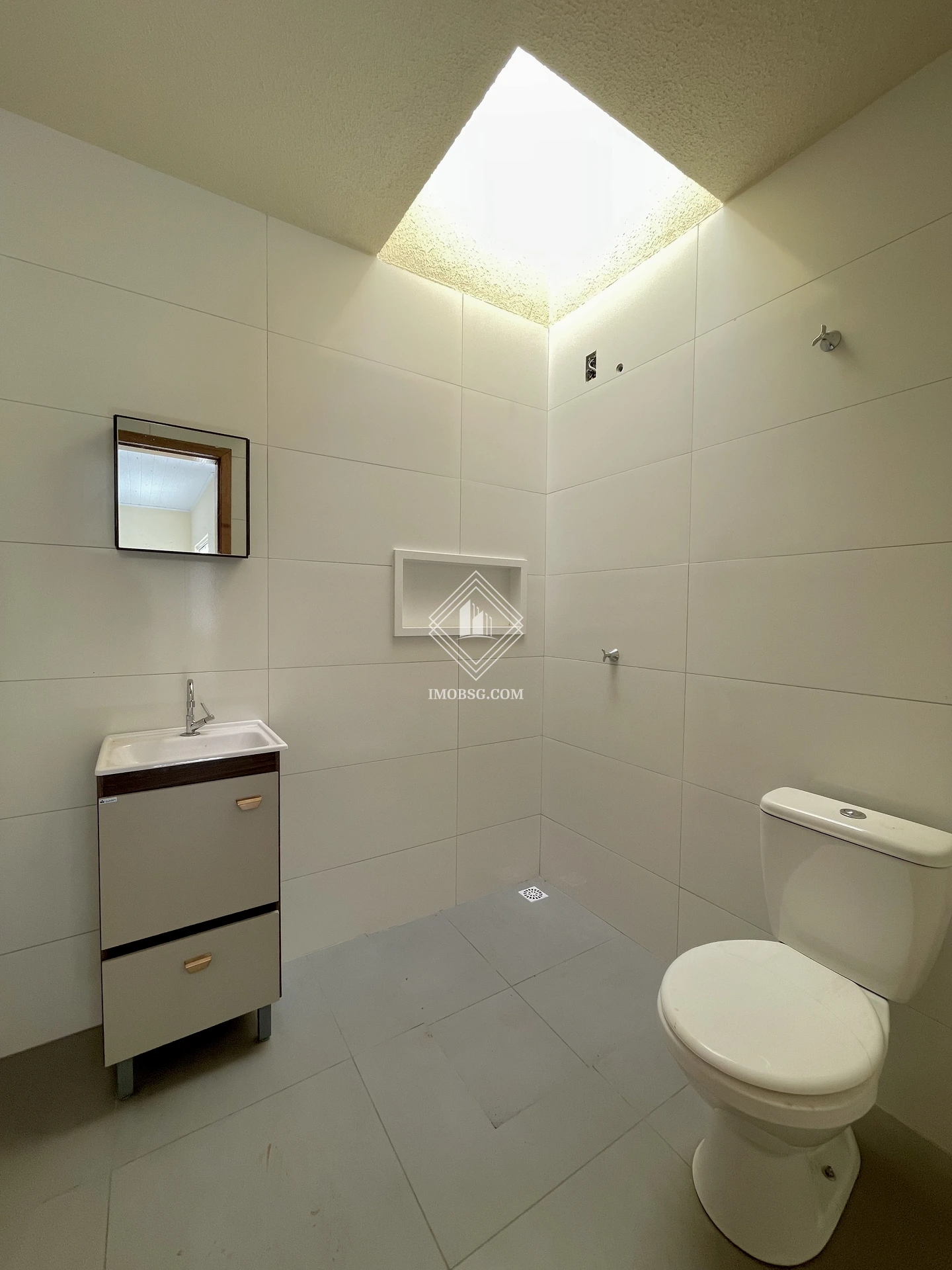 Banheiro social com nicho e gabinete;