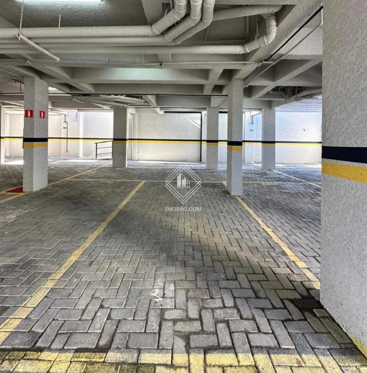Uma vaga de garagem coberta.