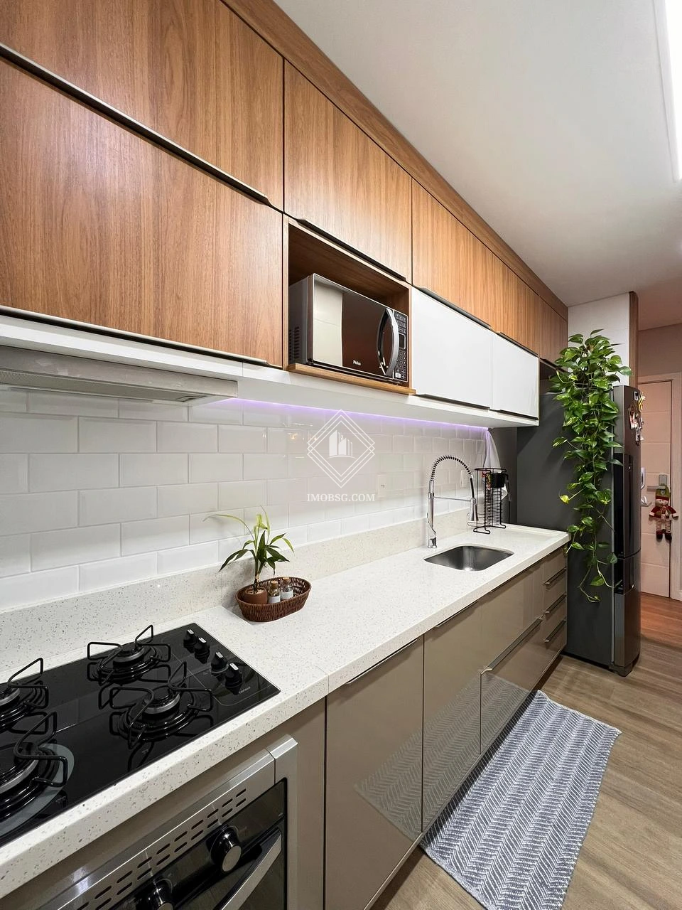 Móveis planejados na sala, cozinha e suíte, garantindo melhor aproveitamento dos espaços.