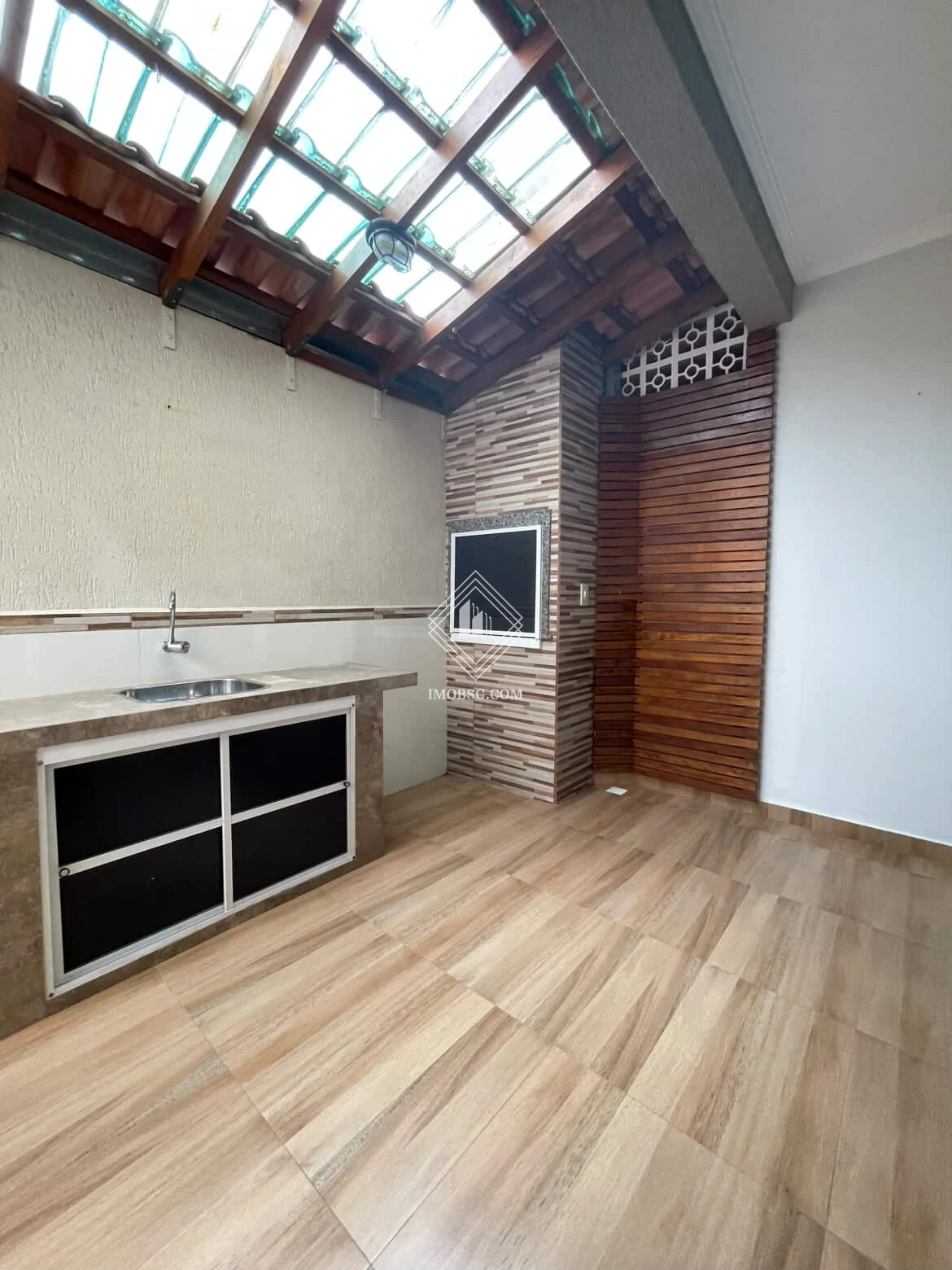 - Churrasqueira coberta com pergolado e pia