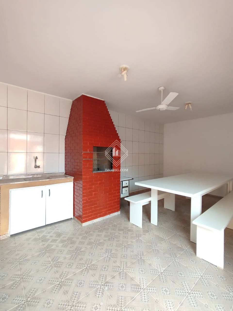A casa contém 3 quartos, sendo 1 suíte, ampla sala de estar e cozinha integrada a sala de jantar.