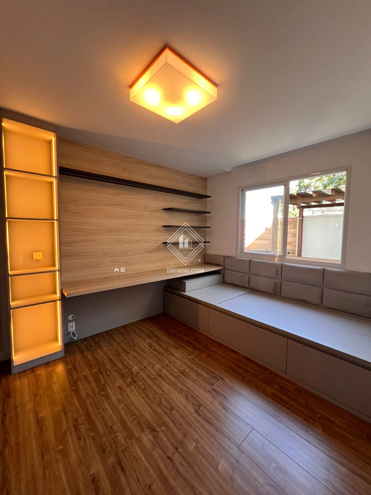 O imóvel conta com 2 quartos, sendo 1 suíte (planta original 3 quartos, podendo ser revertido), ambos com móveis planejados, além de sala de TV, sala de jantar, cozinha planejada, banheiro social e área de serviço com armários. Um dos grandes diferenciais é a ampla área externa, perfeita para momentos de lazer, confraternizações ou para quem deseja ter mais espaço ao ar livre.