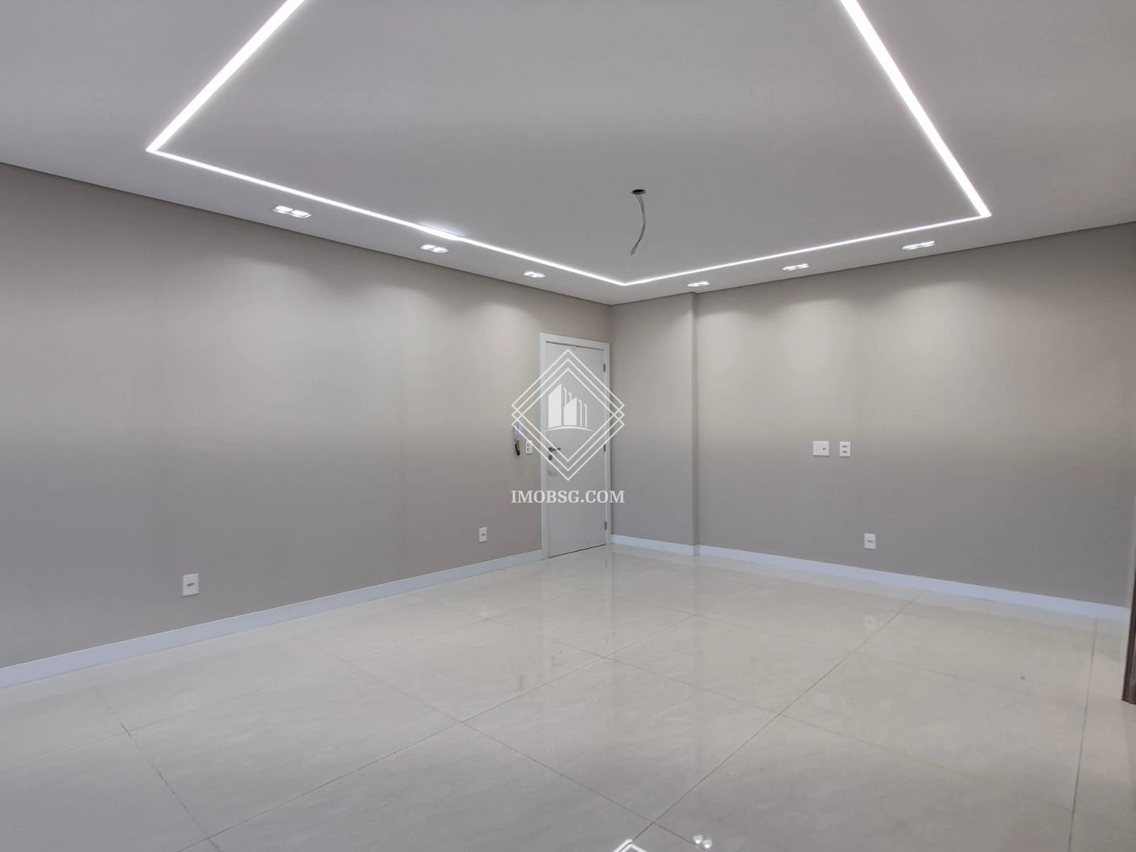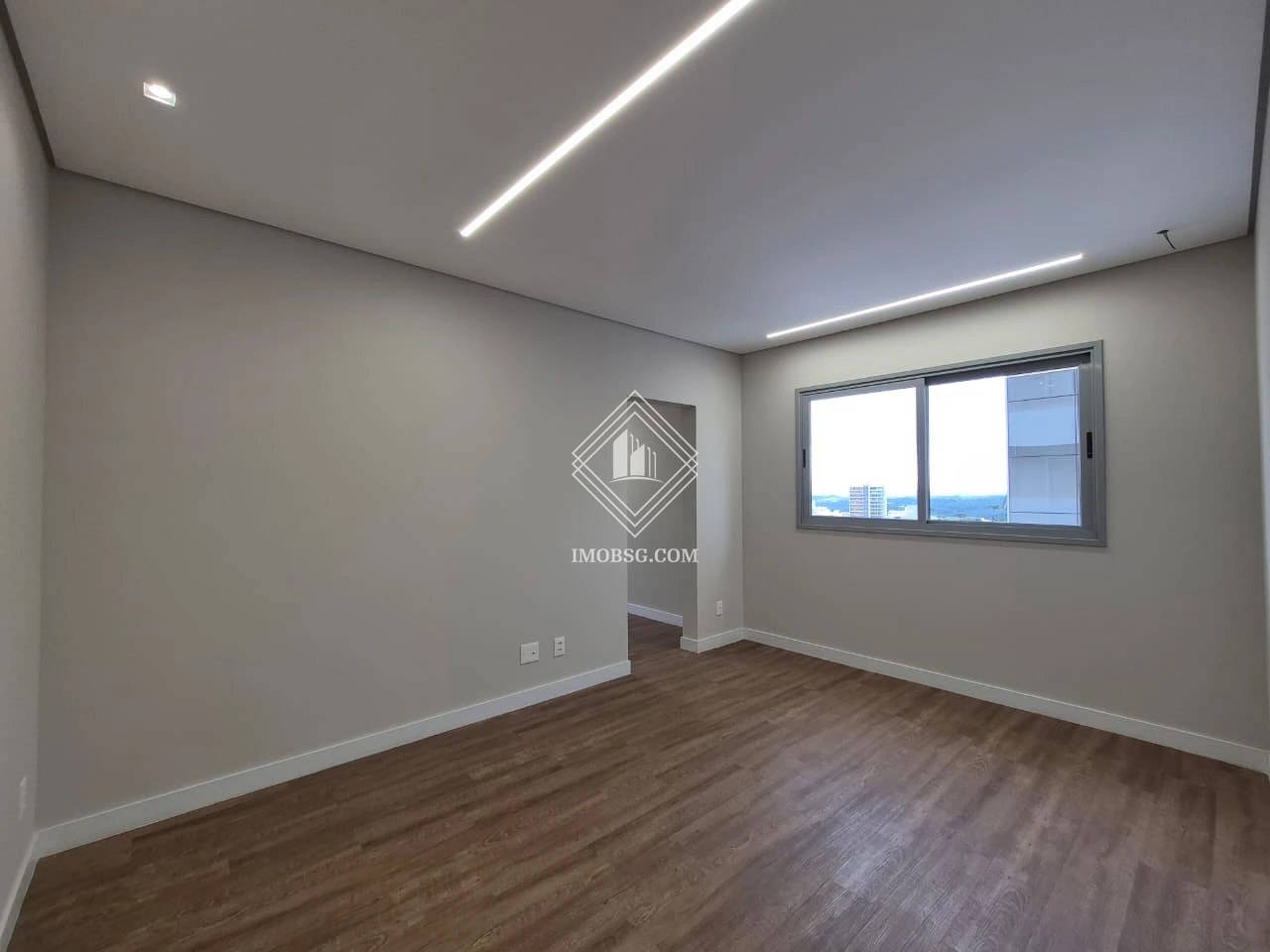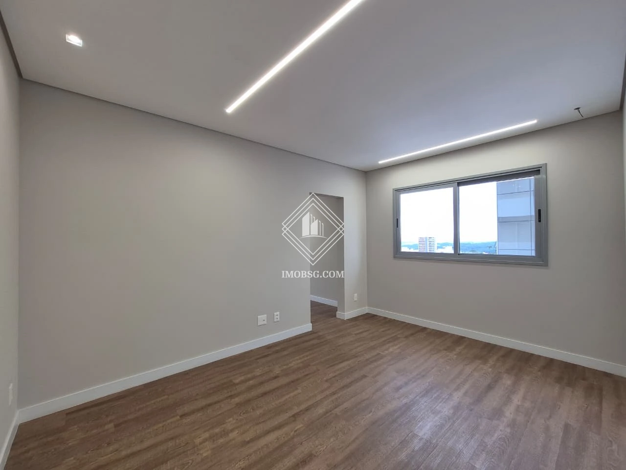 - Sala de estar integrada com sala de jantar, com painel planejado