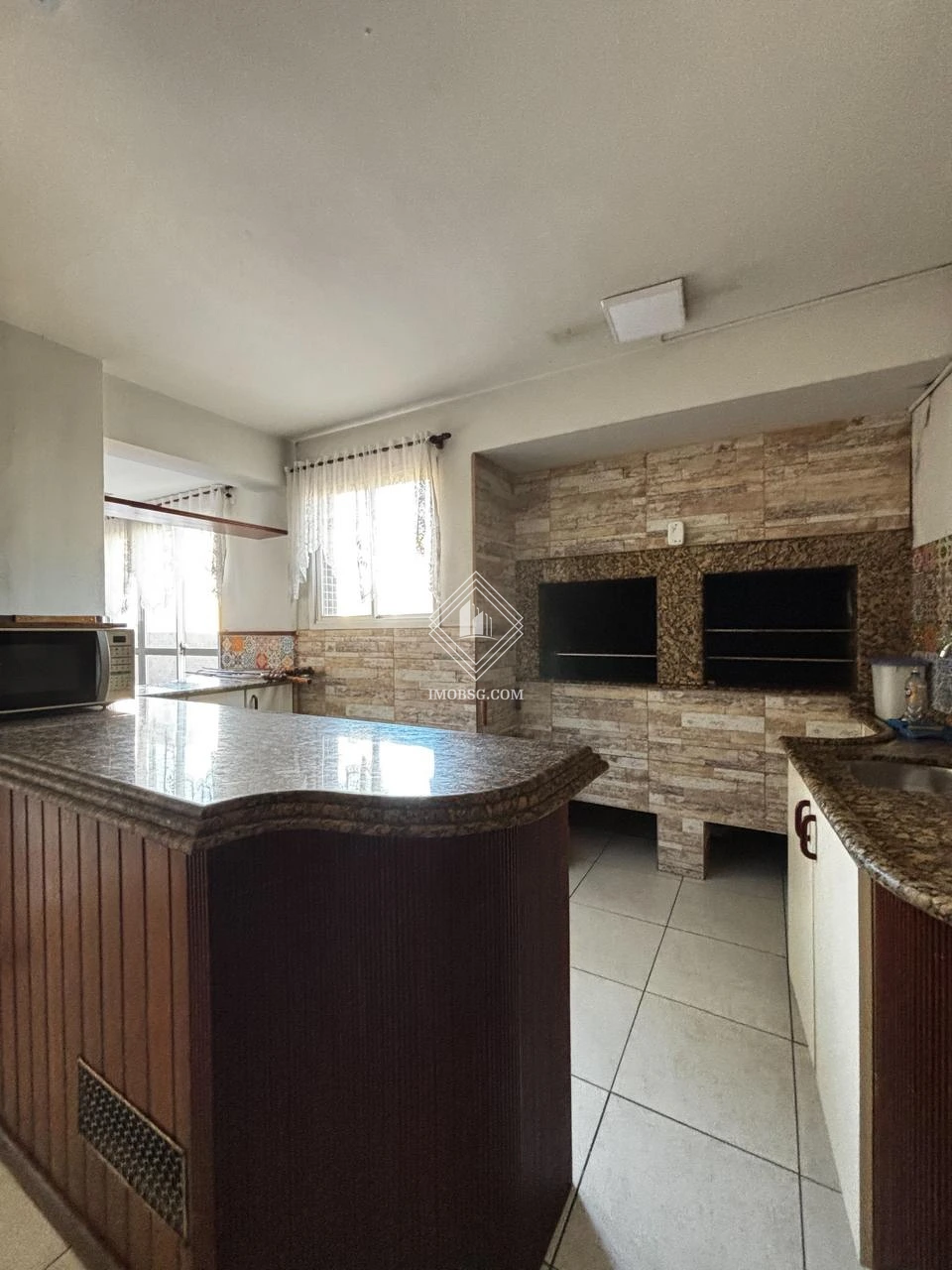 - Area gourmet bem ampla, com churrasqueira, forno a lenha e uma sacada de frente para a Avenida;
