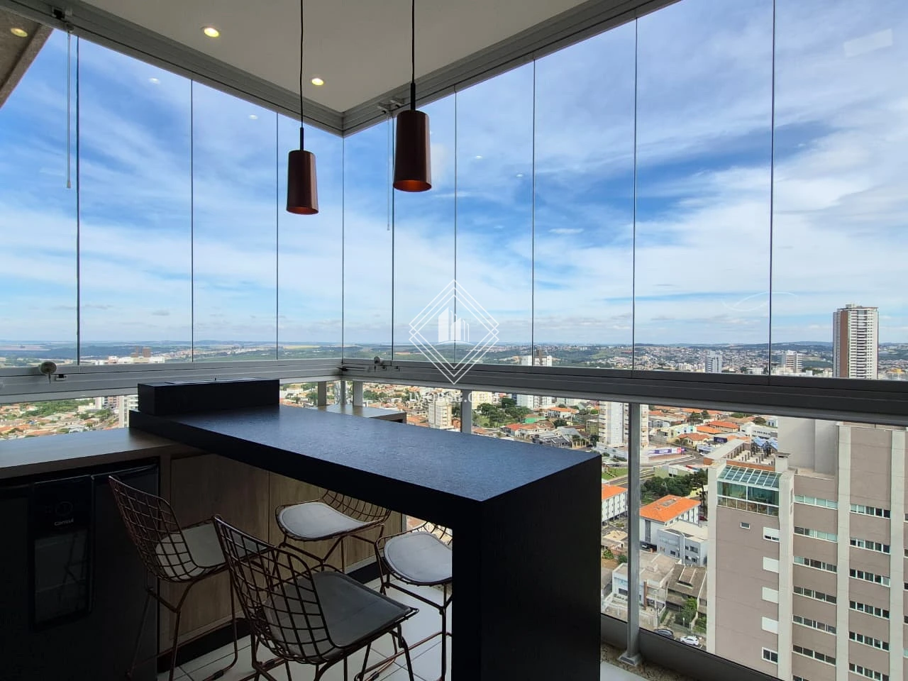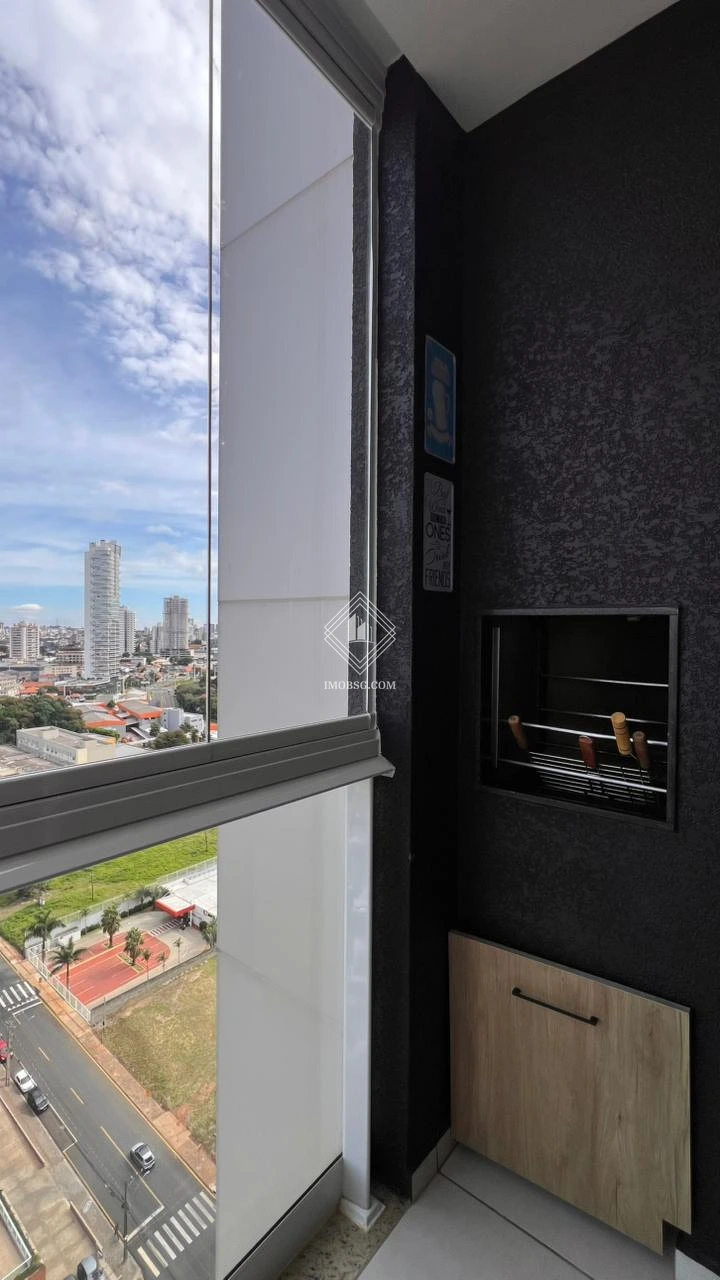 Sacada com churrasqueira, fechada em vidro