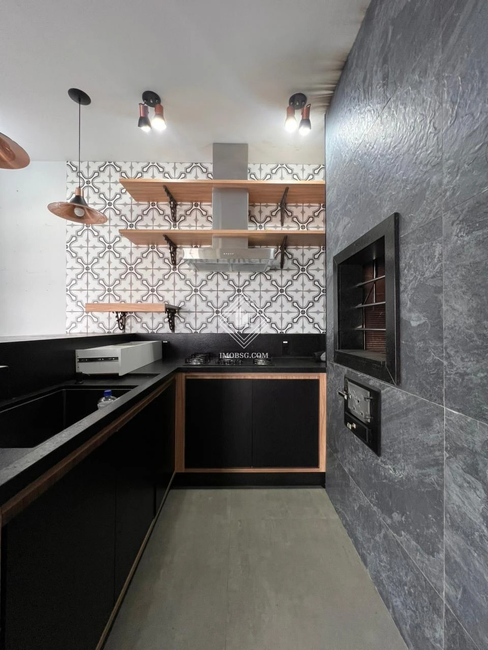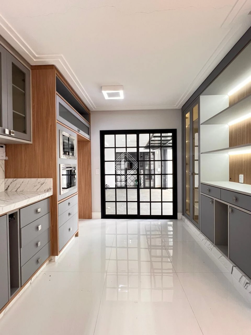 Cozinha completa com móveis planejados, forno embutido, micro-ondas e cooktop