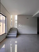 Teto em gesso, iluminação embutida, revestimentos em porcelanato (inferior), piso laminado (superior).