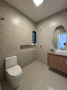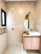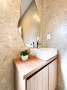 Banheiro com armário e espelho já instalados