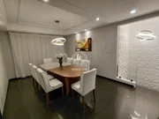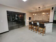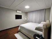 No primeiro pavimento temos: sala de estar, Sala de TV, cozinha sem planejados, sala de jantar, 4 quartos sendo 1 suíte, banheiro social, lavabo, jardim de inverno. Já no subsolo: sala de TV, cozinha com planejados, quarto de despejo, quarto, lavanderia, banheiro, churrasqueira completa, salão de festas, sala de jantar.