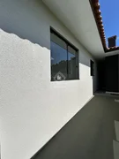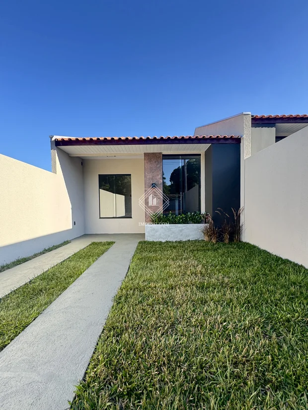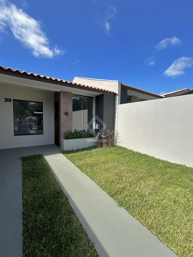 Fachada moderna com janelas amplas, revestimento e arandela, floreira e jardinagem de bom gosto e terreno nos fundos, o espaço propicia construir uma suíte, piscina ou área gourmet.